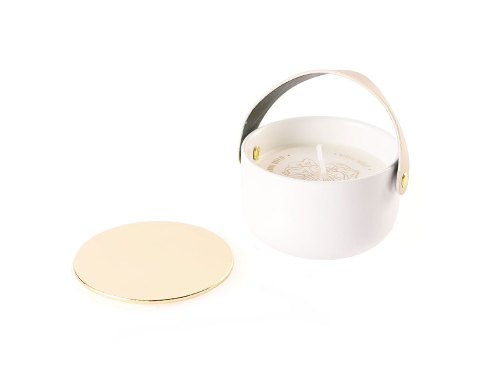 Стильная свеча в фарфоровом кашпо с крышкой и кожаными ручками от Valerie Concept. Изготовлена из натурального соевого воска с хлопковым фитилем, подарит вам долгие часы наслаждения и умиротворения, благодаря нежному аромату с нотками чарующих цветов и хлопка.
