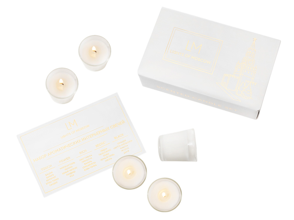 Подарочный набор ароматических свечей - это не только прекрасный, необычный подарок, но и отличный способ познакомиться брендом Lights of Moscow и его эксклюзивными ароматами.