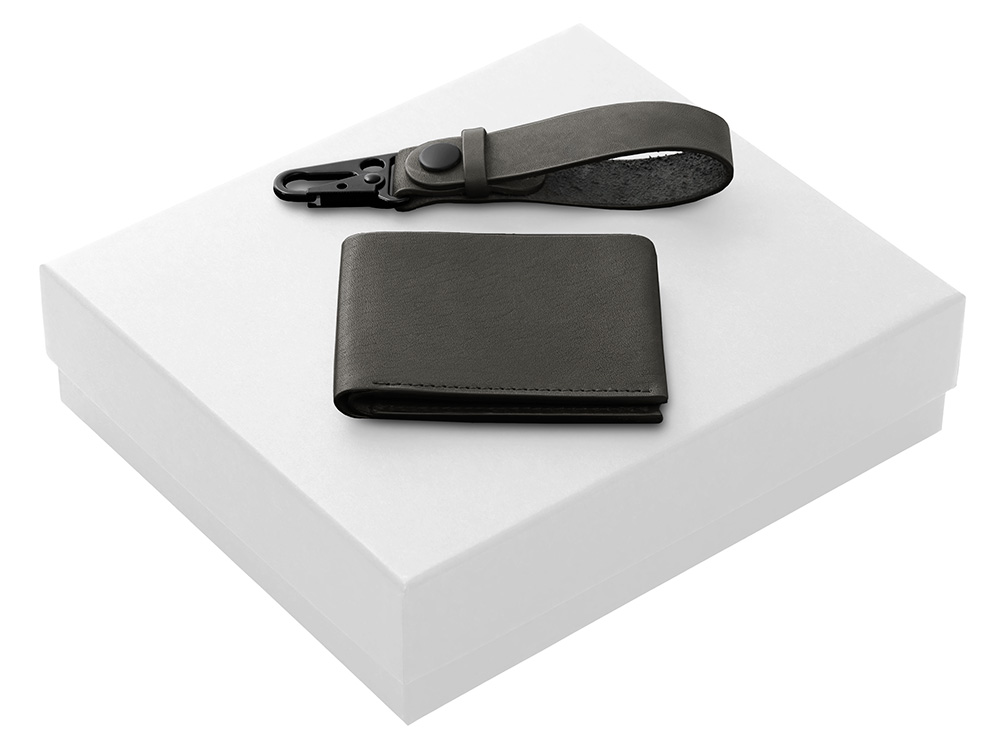 Комплектация: складной бумажник, ключный ремешок с карабином.