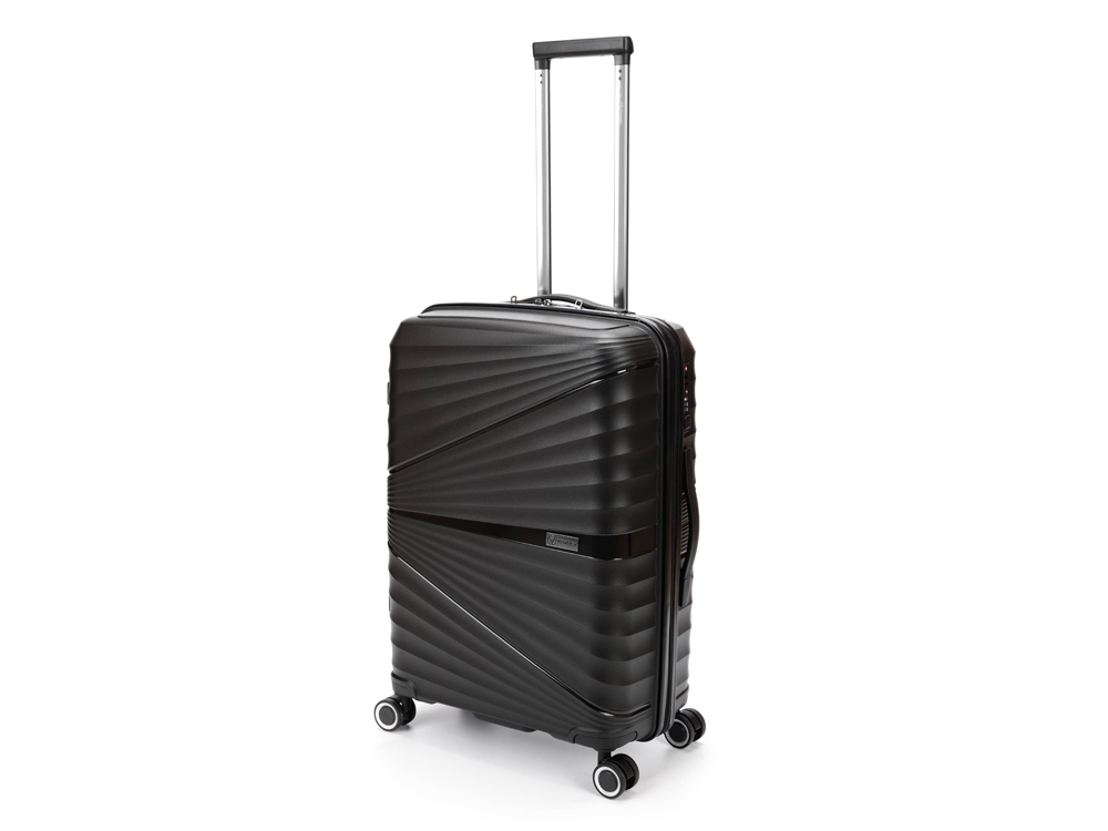 Легкая регулируемая телескопическая ручка и система из 8 колес, вращающихся на 360 градусов, обеспечивает мягкий ход и свободное движение во всех направлениях.