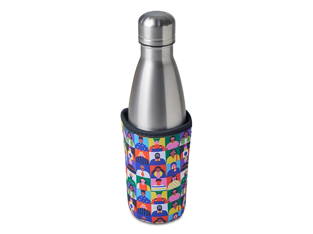 Подходит для прохладительных напитков в жаркую погоду. Чехол выполнен из неопрена, который защищает руки от холодного металла или стекла ёмкости. Это позволяет использовать на мероприятиях покупные напитки в заводской таре, при этом продвигая компанию-организатора за счёт печати на чехле.