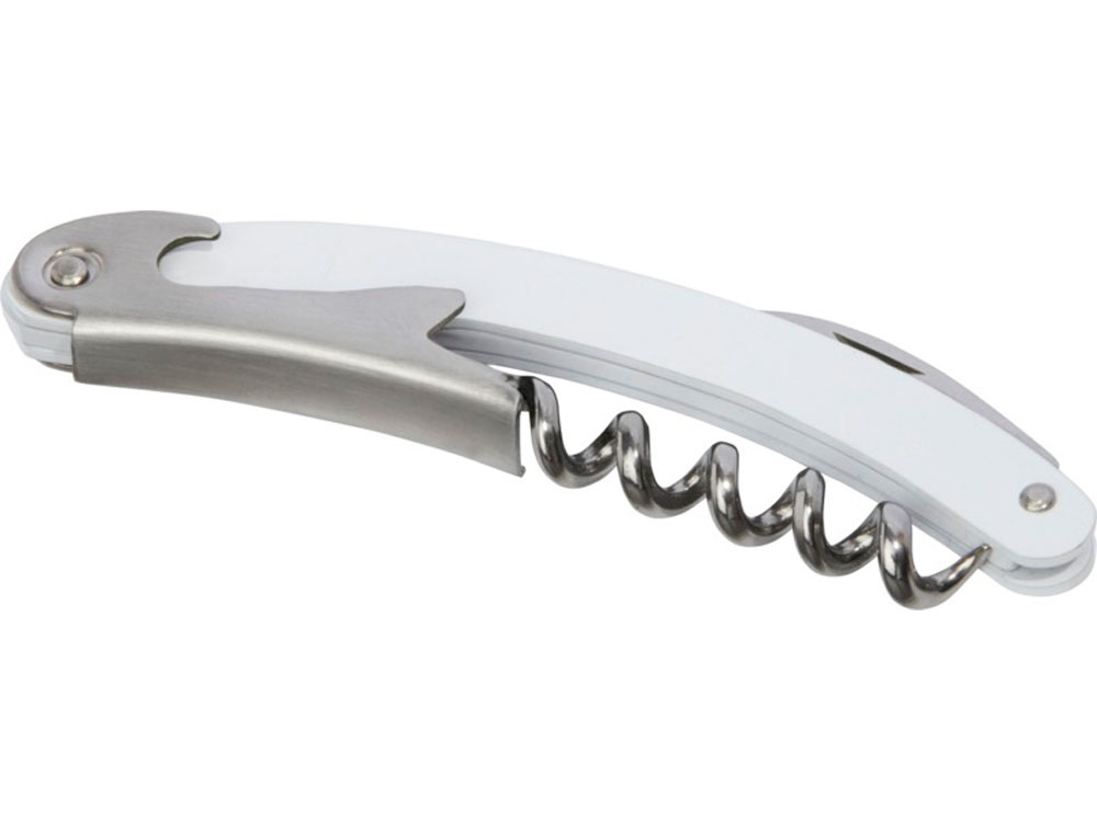 Складной нож из нержавеющей стали с цветным корпусом с обрезчиком для фольги и открывалкой для бутылок. Нержавеющая сталь. Гравировка (оптоволоконный лазер) (Без чернения) на данный товар осуществляется бесплатно. Оплачивается только настройка оборудования в размере 2700 рублей на весь тираж.