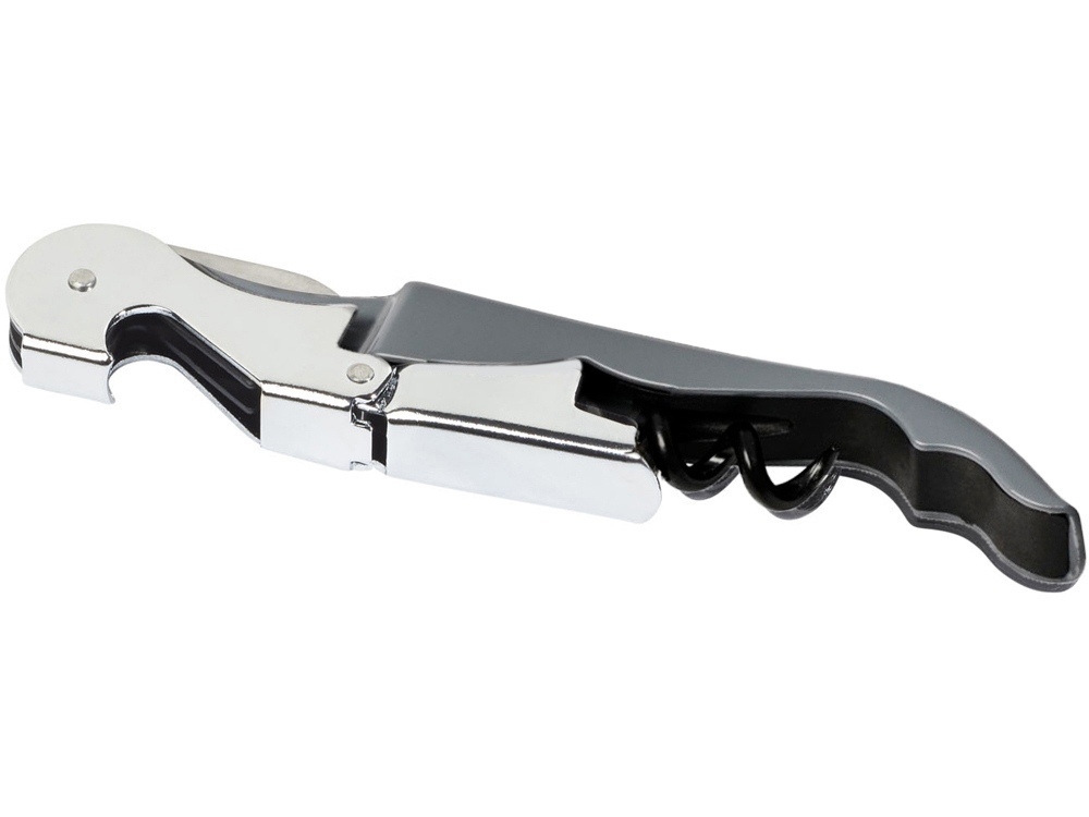 Штопор с буравчиком, открывалкой для бутылок и ножом для срезания фольги. Нержавеющая сталь. Гравировка (оптоволоконный лазер) (Без чернения) на данный товар осуществляется бесплатно. Оплачивается только настройка оборудования в размере 2700 рублей на весь тираж.