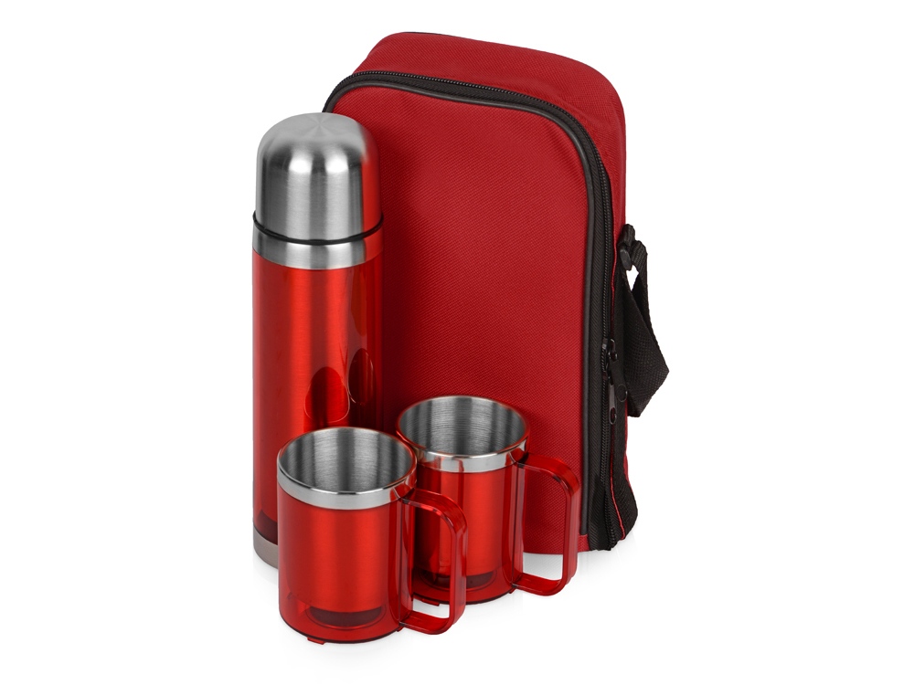 Набор состоит из термоса на 550 мл и двух кружек на 220 мл, которые складываются в удобную дорожную сумку с термоизоляцией. Термос поможет сохранить ваши напитки теплыми в течение 4 часов. Набор придется весьма кстати во время длительных прогулок, походов и даже отдыха на даче. Гравировка (оптоволоконный лазер) (Без чернения) на данный товар осуществляется бесплатно. Оплачивается только настройка оборудования в размере 1100 рублей на весь тираж.