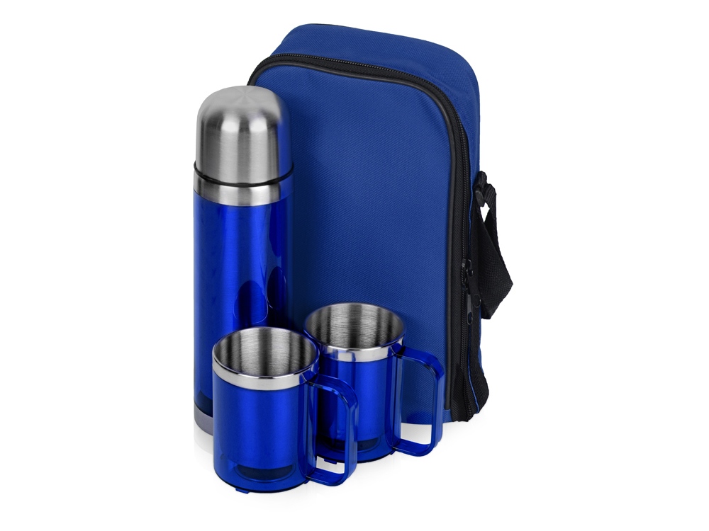 Набор состоит из термоса на 550 мл и двух кружек на 220 мл, которые складываются в удобную дорожную сумку с термоизоляцией. Термос поможет сохранить ваши напитки теплыми в течение 4 часов. Набор придется весьма кстати во время длительных прогулок, походов и даже отдыха на даче. Гравировка (оптоволоконный лазер) (Без чернения) на данный товар осуществляется бесплатно. Оплачивается только настройка оборудования в размере 2700 рублей на весь тираж.