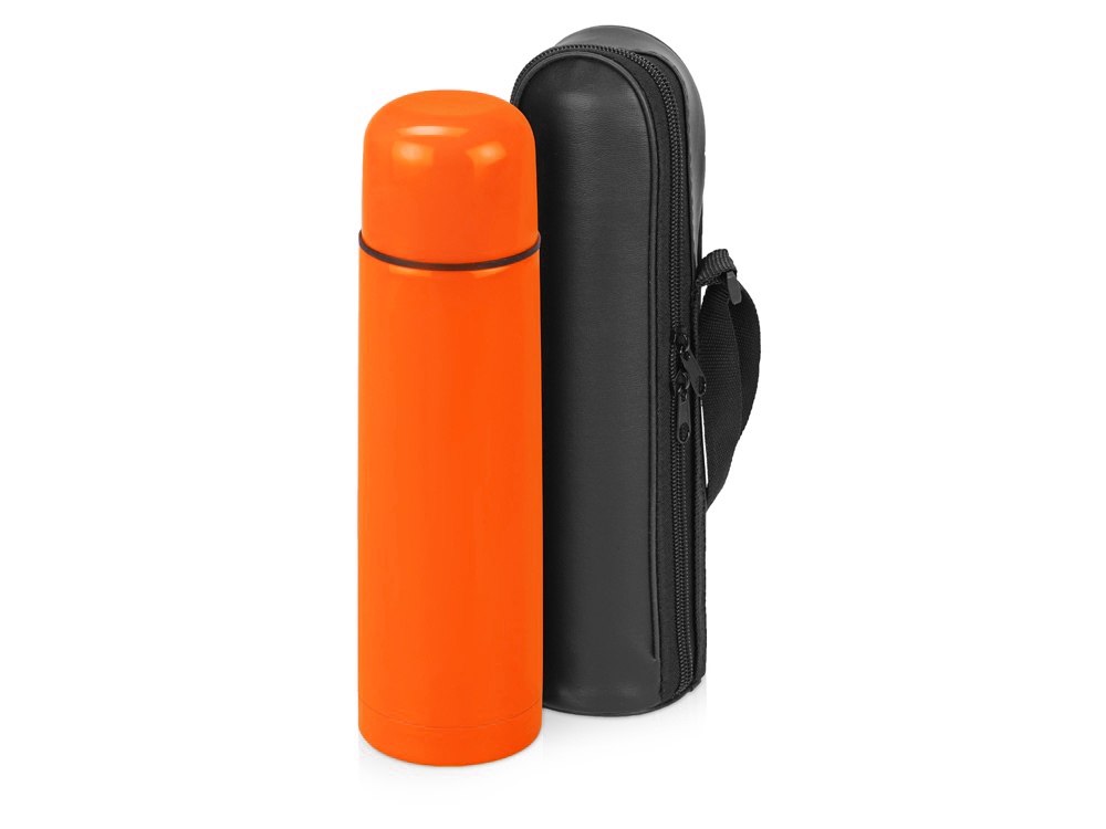 Термос - один из универсальных видов подарков, который уж точно не будет пылиться на полке. Термос на 500 мл имеет компактные размеры, его удобно носить в сумке или брать с собой в автомобиль и он сохранит ваши напитки горячими 24 часа. На глянцевой металлической поверхности прекрасно будет смотреться лазерная гравировка. Термос идет в комплекте с дорожным чехлом. Трафаретная печать круговая (1 цвет (цветные изделия)) на данный товар осуществляется бесплатно. Оплачивается только настройка оборудования в размере 4500 рублей на весь тираж.