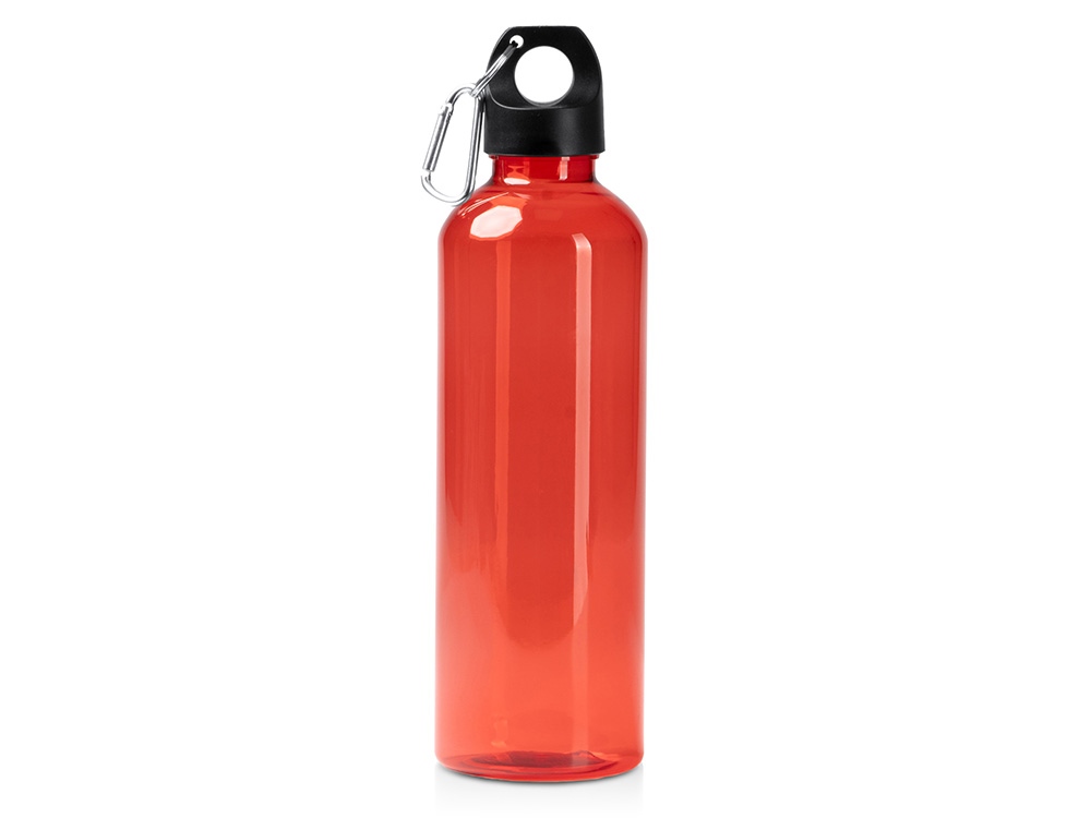 Бутылка с корпусом из RPET. Крышка с карабином. Объём: 800 мл. Трафаретная печать круговая (1 цвет (цветные изделия)) на данный товар осуществляется бесплатно. Оплачивается только настройка оборудования в размере 4500 рублей на весь тираж.
