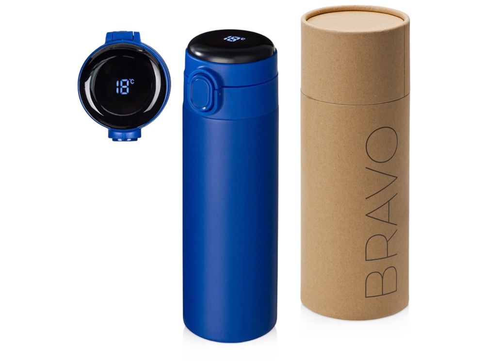 Вакуумная термокружка с медной изоляцией между стенками, которая точно не даст вам обжечься: сенсорный индикатор температуры сообщает о температуре напитка, выводя на дисплей информацию в градусах Цельсия. Что немаловажно, сенсор работает от сменной батарейки, что существенно продлит срок службы Bravo, позволяя не расставаться с полюбившейся термокружкой.