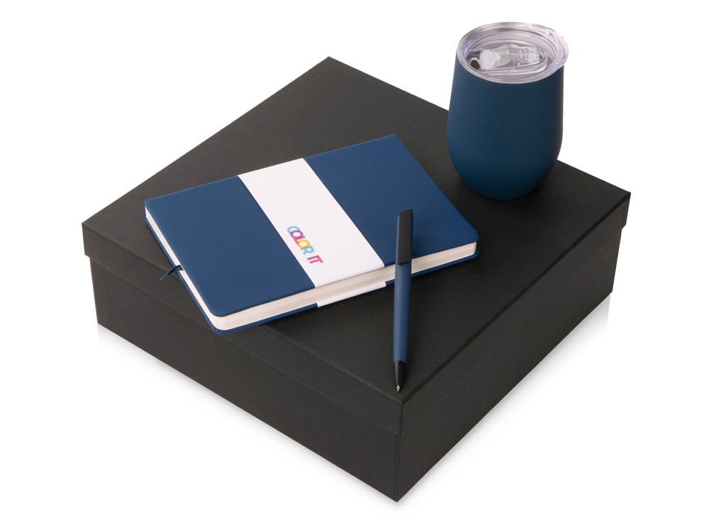 - подарочная упаковка из картона, оклеенного дизайнерской бумагой уже включена в набор. Трафаретная печать (1 цвет (цветные изделия)) на данный товар осуществляется бесплатно. Оплачивается только настройка оборудования в размере 9100 рублей на весь тираж.