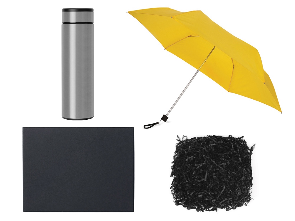 Такой набор подойдет как для городских прогулок, так и для выездов на природу. Термос сохранит ваш напиток горячим, а зонт защитит от дождя.