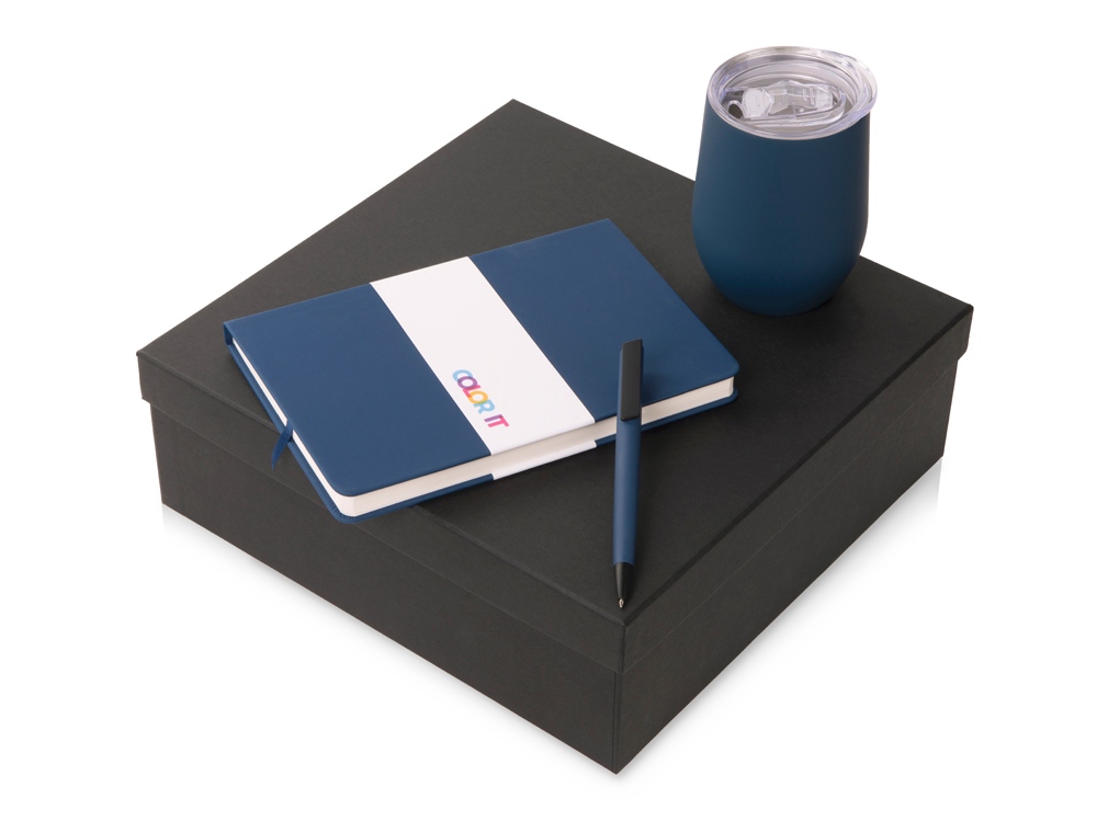 - подарочная упаковка из картона, оклеенного дизайнерской бумагой уже включена в набор. Трафаретная печать (1 цвет (цветные изделия)) на данный товар осуществляется бесплатно. Оплачивается только настройка оборудования в размере 10000 рублей на весь тираж.