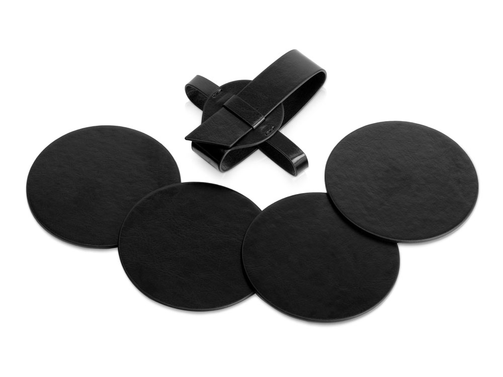 Набор состоит из четырех подставок и ремня-чехла, с помощью которого костеры очень удобно хранить в одном месте. Подставки круглой формы идеально подойдут для бокалов разного диаметра. Универсальная форма, легко моющийся материал, персонализация на самих костерах, а также ремешке. Тиснение (Блинт) на данный товар осуществляется бесплатно. Оплачивается только настройка оборудования в размере 8700 рублей на весь тираж.