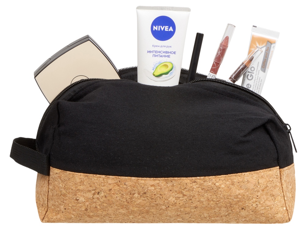 Большой вместительный несессер изготовлен из натуральных материалов- хлопка и пробки. Закрывается на молнию. Сбоку ручка для удобства использования. Термотрансфер (1 цвет (цветные изделия)) на данный товар осуществляется бесплатно. Оплачивается только настройка оборудования в размере 10000 рублей на весь тираж.