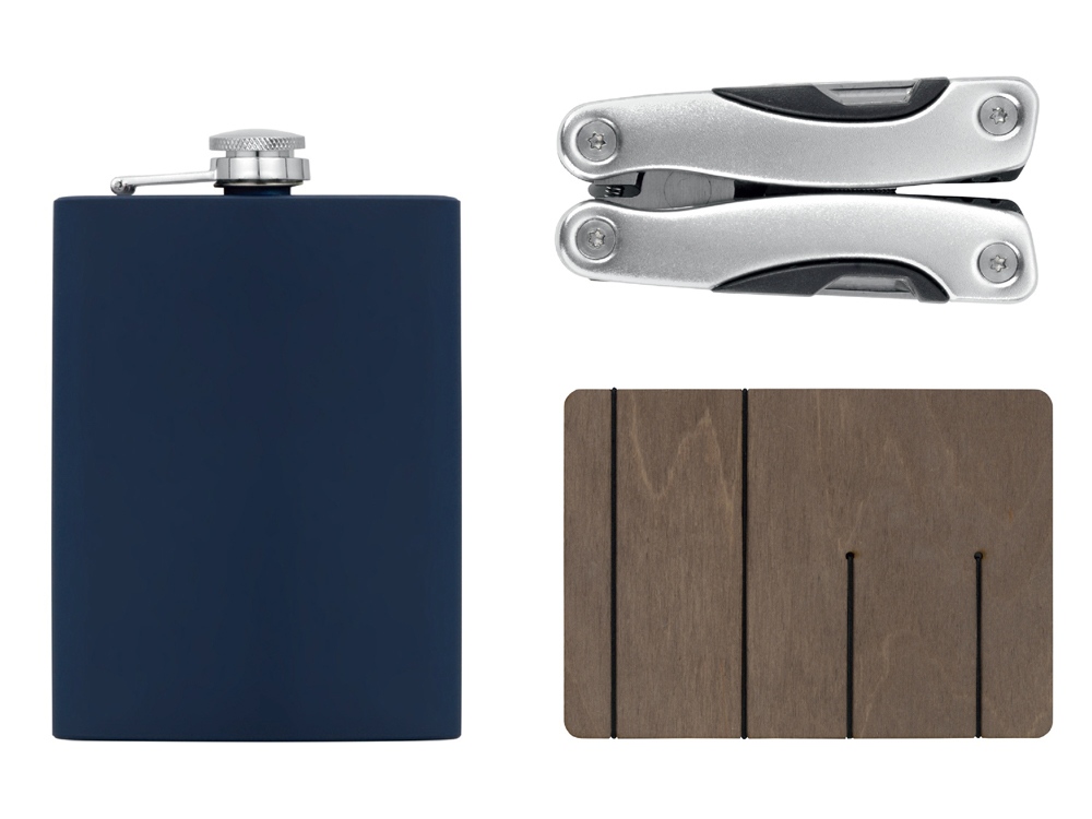 В набор входят мультиинструмент и фляжка, которые пригодятся как в городе, так и на природе.