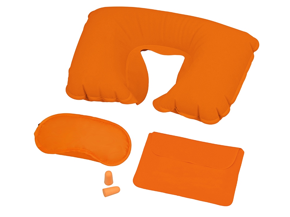 Замечательный дорожный набор включает в себя надувную подушку, маску на глаза и беруши, все это упаковано в специальный чехол. Приятная на ощупь поверхность набора обеспечит комфортный сон в любой обстановке. Термотрансфер (1 цвет (цветные изделия)) на данный товар осуществляется бесплатно. Оплачивается только настройка оборудования в размере 10000 рублей на весь тираж.