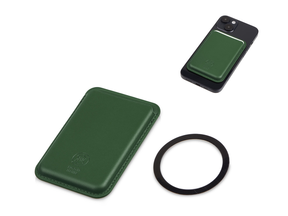 К смартфонам iPhone 12, 13, 14,15 картхолдер крепится за счёт встроенных магнитов у iPhone, а к другим смартфонам клеится металлическое кольцо (входит в комплект), а чехол магнитится к кольцу. При этом кольцо не блокирует возможность беспроводной зарядки и практически незаметно. Тиснение (Блинт) на данный товар осуществляется бесплатно. Оплачивается только настройка оборудования в размере 6200 рублей на весь тираж.
