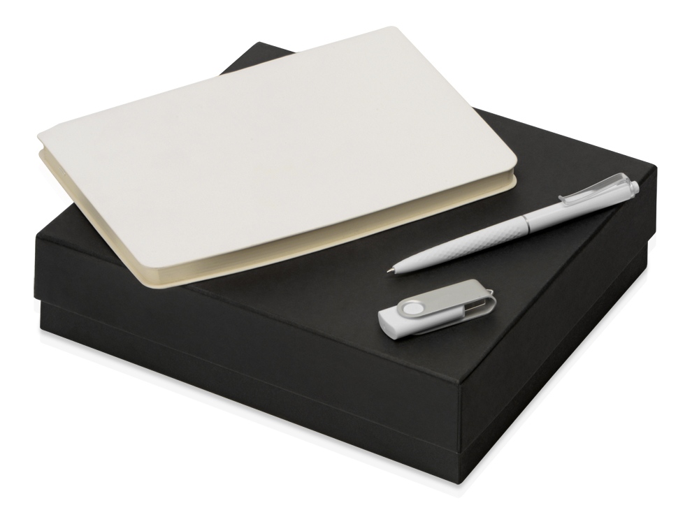 Подарочный набор Notepeno - это универсальный бизнес набор в современном стиле. С флеш-картой Квебек разъемом USB 2.0 все документы, презентации и договора будут под рукой. Блокнот Notepeno представлен в универсальном формате А5, отлично подойдет для любого мероприятия. Шариковая ручка Plane с фигурным корпусом soft-touch, который делает письмо невероятно комфортным. Набор упакован в дизайнерскую подарочную коробку из переплетного картона кашированного дизайнерской бумагой эфалин с ложементом из акустического поролона. Доступен в нескольких цветах. Тиснение (Блинт) на данный товар осуществляется бесплатно. Оплачивается только настройка оборудования в размере 8700 рублей на весь тираж.
