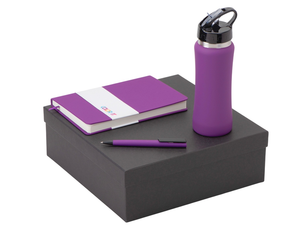 - подарочная упаковка из картона, оклеенного дизайнерской бумагой уже включена в набор. Трафаретная печать (1 цвет (цветные изделия)) на данный товар осуществляется бесплатно. Оплачивается только настройка оборудования в размере 10000 рублей на весь тираж.