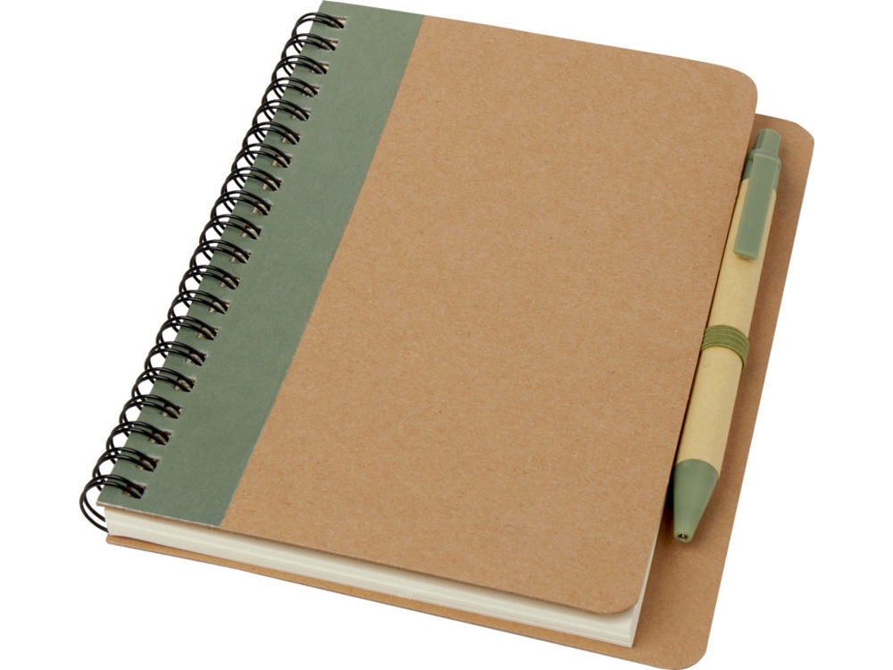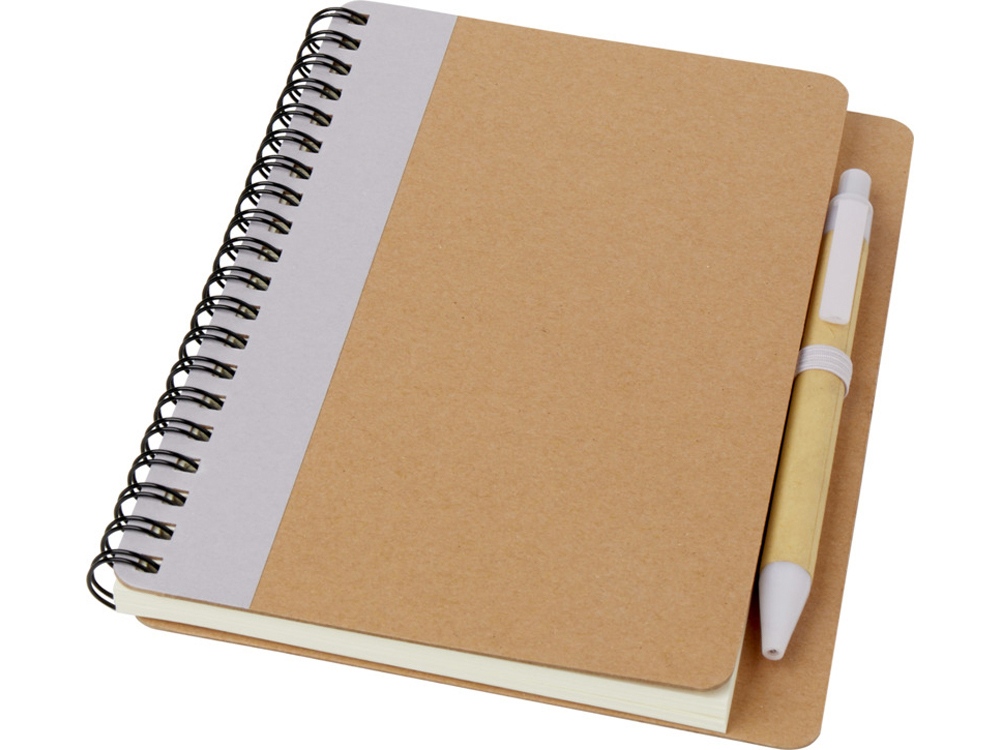 Записная книжка с обложкой из переработанной бумаги. 60 линованных листов, переработанная бумага формата А6, ручка в комплекте. Переработанная бумага. Трафаретная печать по твердым материалам (1 цвет (цветные изделия)) на данный товар осуществляется бесплатно. Оплачивается только настройка оборудования в размере 4500 рублей на весь тираж.