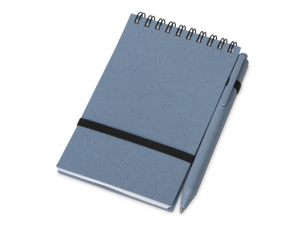 Блокнот с обложкой из переработанной пшеницы и пластика. Блок состоит из 60 листов переработанной бумаги белого цвета. Крепление - пружина. В комплекте шариковая ручка из пшеничной соломы. Тампопечать (1 цвет (цветные изделия)) на данный товар осуществляется бесплатно. Оплачивается только настройка оборудования в размере 4500 рублей на весь тираж.