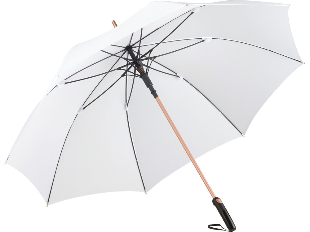 Зонт-трость с большим куполом укроет от дождя двух человек. Каркас изготовлен из особо прочного алюминия. Детали из алюминия окрашены в популярные цвета и стильно выглядят. Зонт плавно раскрывается нажатием кнопки на ручке. В ручку интегрирован эластичный шнур для большего удобства. Трафаретная печать (1 цвет (белые изделия)) на данный товар осуществляется бесплатно. Оплачивается только настройка оборудования в размере 7300 рублей на весь тираж.