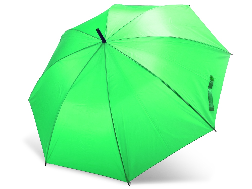Автоматический зонт с тканью и ручкой в тон. Спицы и наконечники черного цвета. Застежка на липучке. 105 см в диаметре.