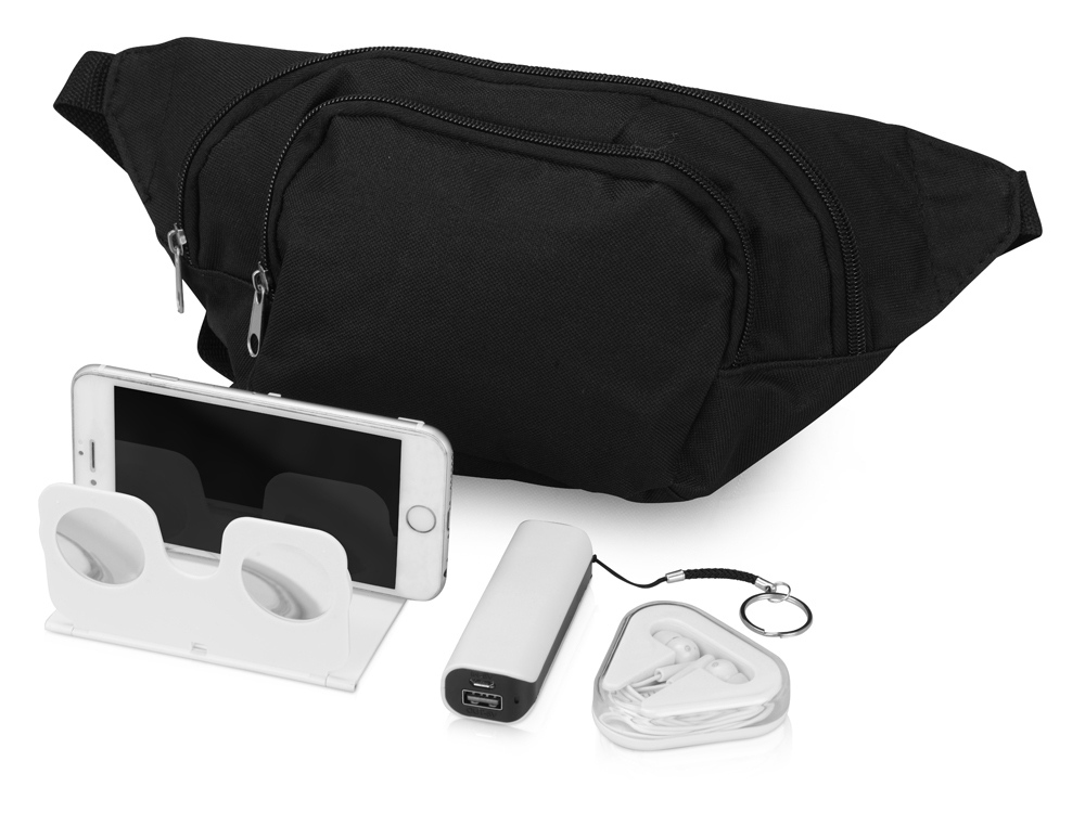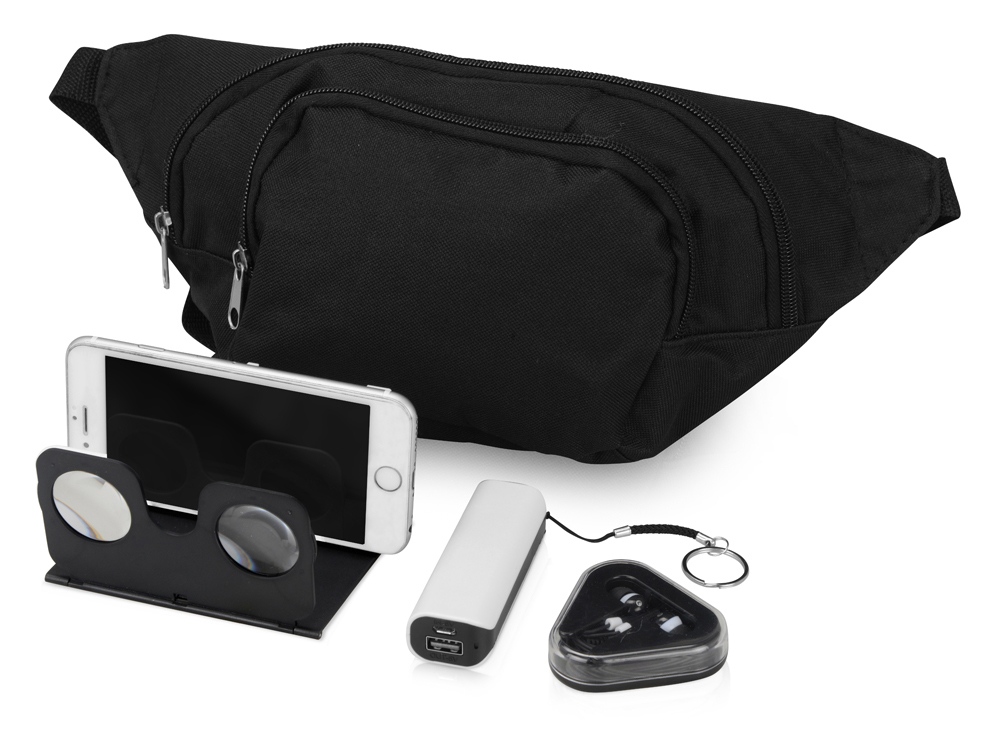 Хотите посмотреть 3D фильм в дороге? Набор Virtuality поможет с этим. Благодаря 3D очкам вы можете смотреть фильм прямо с экрана мобильного устройства, а благодаря наушникам посторонние звуки не будут вас отвлекать. С зарядным устройством Basis не нужно переживать о том, что ваш смартфон разрядится в дороге. Все предметы сложены в удобную поясную сумку. Внимание! В набор не входят провода для зарядного устройства. Тампопечать (1 цвет (белые изделия)) на данный товар осуществляется бесплатно. Оплачивается только настройка оборудования в размере 4500 рублей на весь тираж.