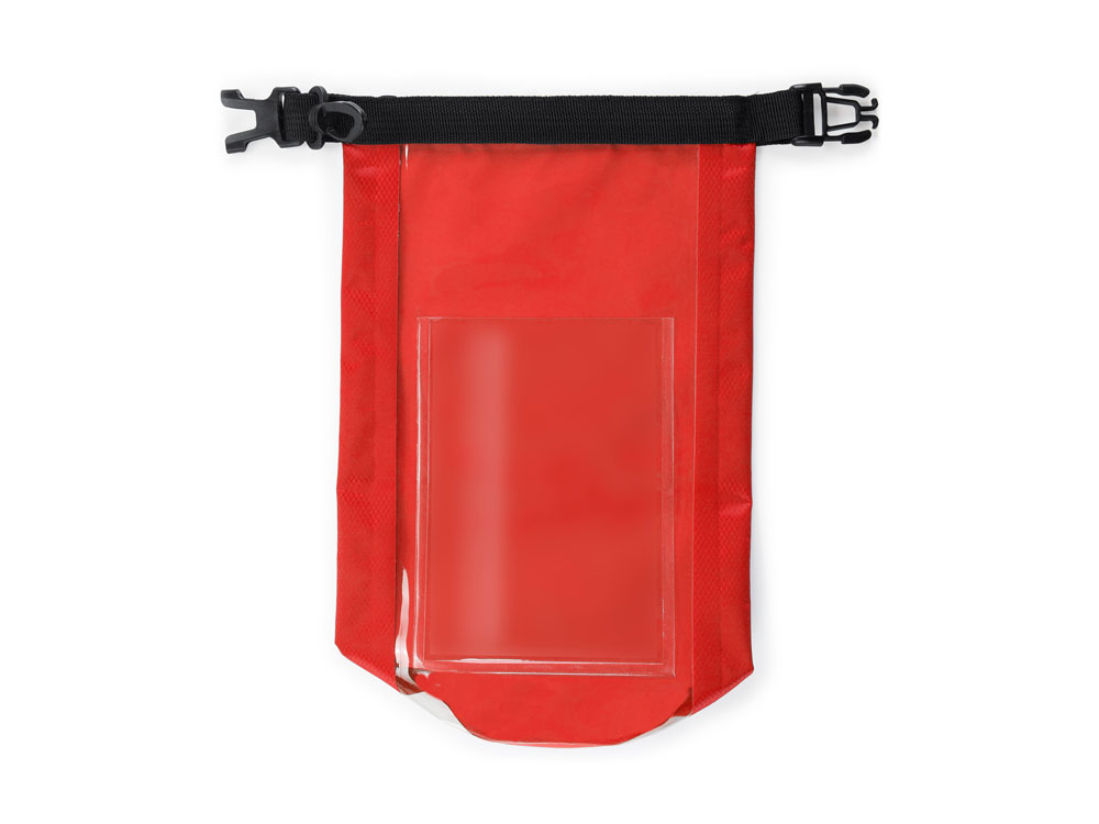 Водонепроницаемая сумка из прочного рипстопа. Практичное окошко с карманом для мобильного телефона. Водонепроницаемая система закрытия с защелкой и карабином для транспортировки. Общий объем: 3 л. Полезный объем: 2,5 л. Тампопечать (1 цвет (цветные изделия)) на данный товар осуществляется бесплатно. Оплачивается только настройка оборудования в размере 4500 рублей на весь тираж.