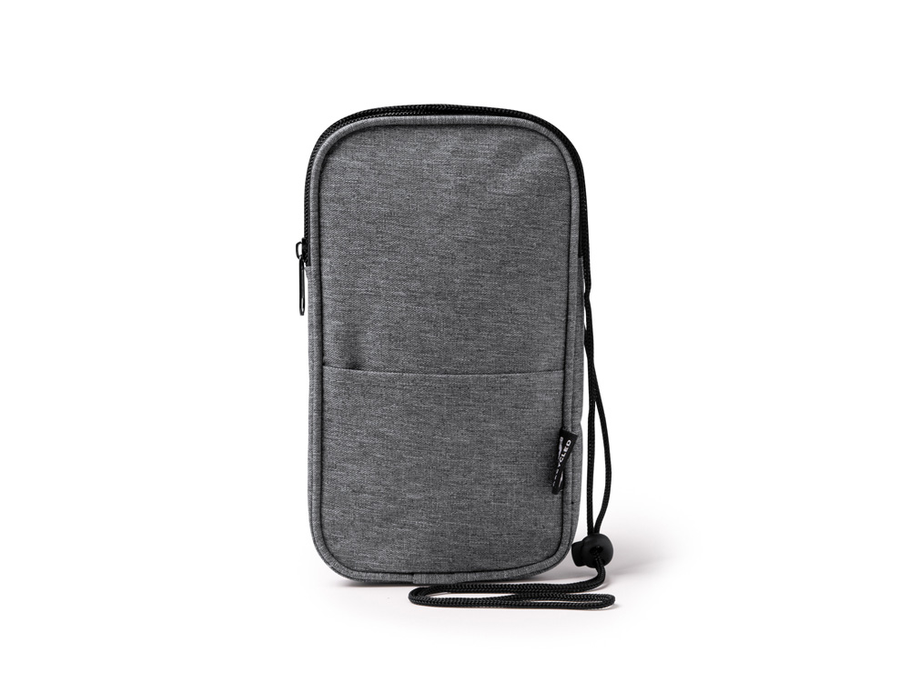 Мобильный чехол из полиэстера RPET. Основное отделение с застежкой-молнией. Внешний карман. В комплект входит шнурок для переноски. Длина шнурка 122 см. Термотрансфер (1 цвет (цветные изделия)) на данный товар осуществляется бесплатно. Оплачивается только настройка оборудования в размере 10000 рублей на весь тираж.