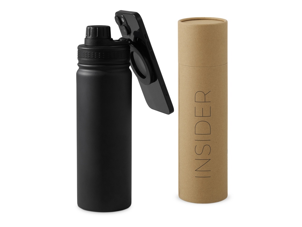 Современные технологии и стильный дизайн объединились в одной бутылке! Спортивная бутылка с магнитным держателем MagSafe поможет вам всегда держать водный баланс в норме и сделает жизнь удобнее. Благодаря магнитному держателю бутылка надежно удерживает iPhone 12 версии и новее. Магнитное крепление подходит также и для любого смартфона, т.к. в комплекте есть металлическое кольцо с клейким слоем. Кольцо наклеивается на заднюю крышку или чехол смартфона, и вы можете крепить смартфон к бутылке за секунду. Объем 600мл.