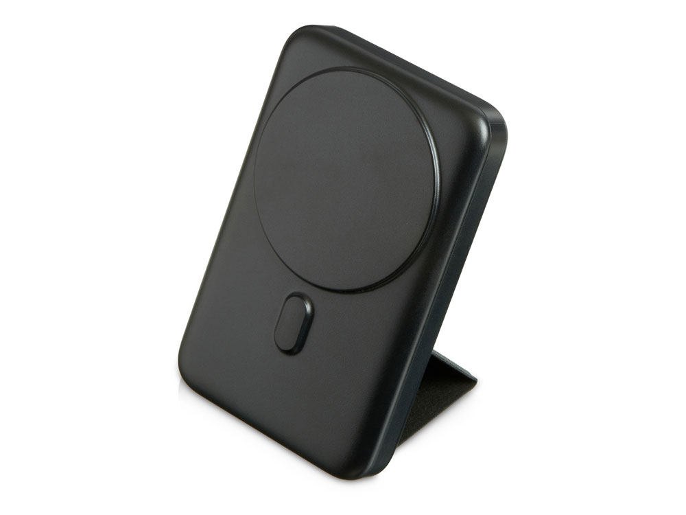 Сзади расположена пластичная складная подставка из качественного полиуретана с зернистой текстурой. В развернутом виде на столе подставка позволяет пользоваться смартфоном одной рукой, при этом, благодаря магнитным держателям, смартфон может быть расположен как вертикально, так и горизонтально.