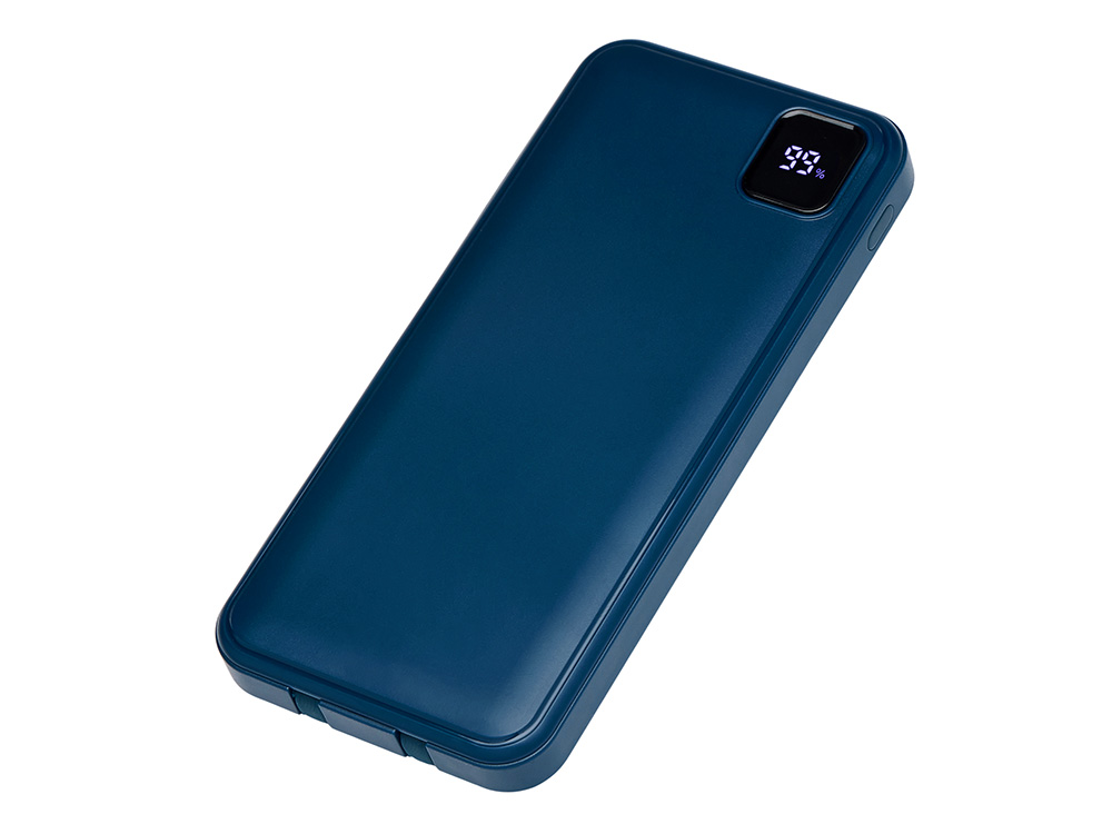 Удобный внешний аккумулятор с встроенными кабелями USB-C и Lightning — ваш надежный партнер в путешествиях, на встречах и в повседневных задачах. Цифровой дисплей в реальном времени показывает точный остаток заряда, а компактные габариты делают его таким же удобным, как смартфон. Прочный корпус из переработанного АБС-пластика и емкость 10000 мАч обеспечивают долгую работу даже при интенсивном использовании. Идеальный выбор для тех, кто ценит комфорт и функциональность в одном устройстве. Продуманная упаковка: для открытия просто потяните за язычок, и появится гаджет с нанесением.