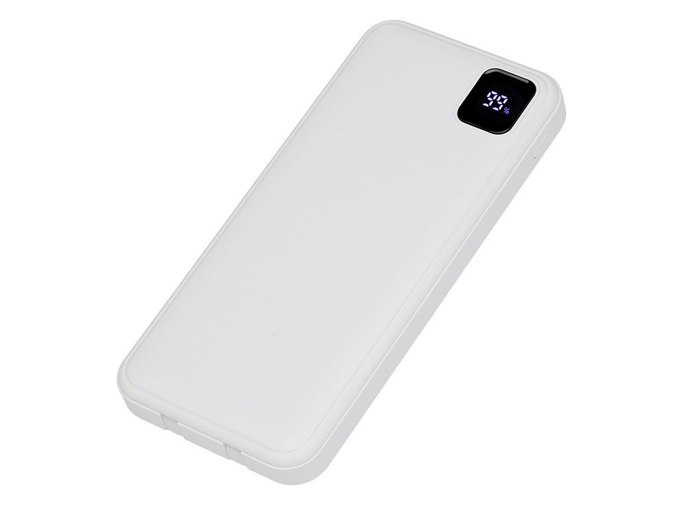 Удобный внешний аккумулятор с встроенными кабелями USB-C и Lightning — ваш надежный партнер в путешествиях, на встречах и в повседневных задачах. Цифровой дисплей в реальном времени показывает точный остаток заряда, а компактные габариты делают его таким же удобным, как смартфон. Прочный корпус из переработанного АБС-пластика и емкость 10000 мАч обеспечивают долгую работу даже при интенсивном использовании. Идеальный выбор для тех, кто ценит комфорт и функциональность в одном устройстве. Продуманная упаковка: для открытия просто потяните за язычок, и появится гаджет с нанесением.