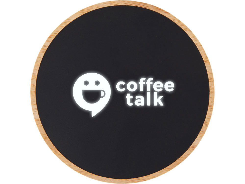 Заряжайте устройства с элегантностью и заботой о планете — с беспроводным зарядным устройством на 15 Вт, выполненным из натурального бамбука и переработанного ABS-пластика. Это не просто функциональный гаджет, а стильный элемент интерьера, который органично впишется в ваш дом, офис или коворкинг. Благодаря поддержке быстрой беспроводной зарядки до 15 Вт, ваш смартфон восполняет энергию без лишних проводов и суеты. А встроенная белая подсветка логотипа добавляет изюминку: ваш бренд или инициалы мягко светятся при зарядке, создавая атмосферу уюта и индивидуальности. Идеальный выбор для тех, кто ценит экологичность, технологии и эстетику.