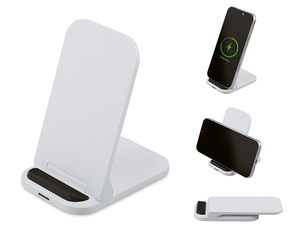 Идеальное решение для современного пользователя 2-в-1 — универсальная беспроводная зарядка-подставка. Два центра зарядки позволяют удобно размещать смартфон как в вертикальном, так и в горизонтальном положении. Благодаря складной конструкции устройство легко помещается в сумку или на полку, не занимая лишнего места на рабочем столе. А если вы хотите превратить зарядку в персонализированный подарок или рекламный сувенир — передняя панель подставки может быть полностью запечатана ярким УФ-изображением любого дизайна. Стильная, функциональная и компактная — ваш телефон всегда будет заряжен и в порядке. Мощность беспроводной зарядки до 15 Вт (при наличии сетевого адаптера 18 Вт и выше). Поставляется в стильной коробке-слайдере.