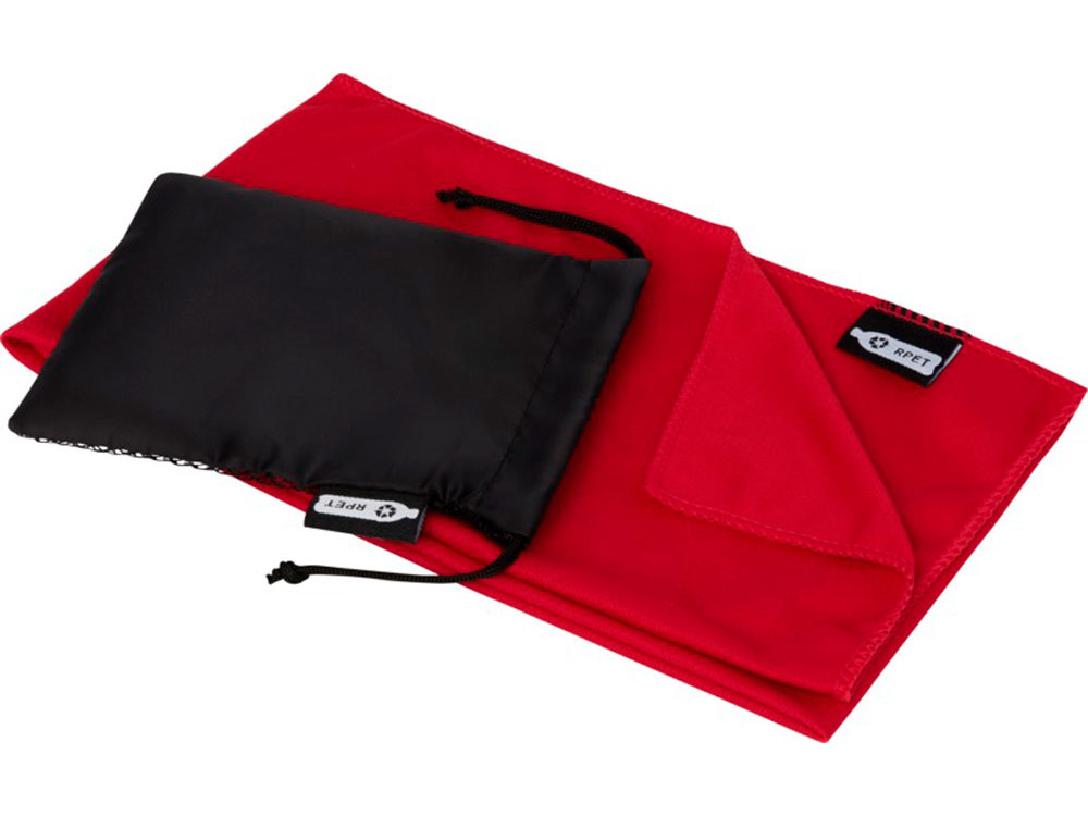 Быстро впитывающее, быстро высыхающее и моющееся охлаждающее полотенце из переработанного ПЭТ. Поставляется в маленьком сетчатом мешочке из переработанного ПЭТ с застежкой для удобной переноски. Термотрансфер (1 цвет (цветные изделия)) на данный товар осуществляется бесплатно. Оплачивается только настройка оборудования в размере 10000 рублей на весь тираж.