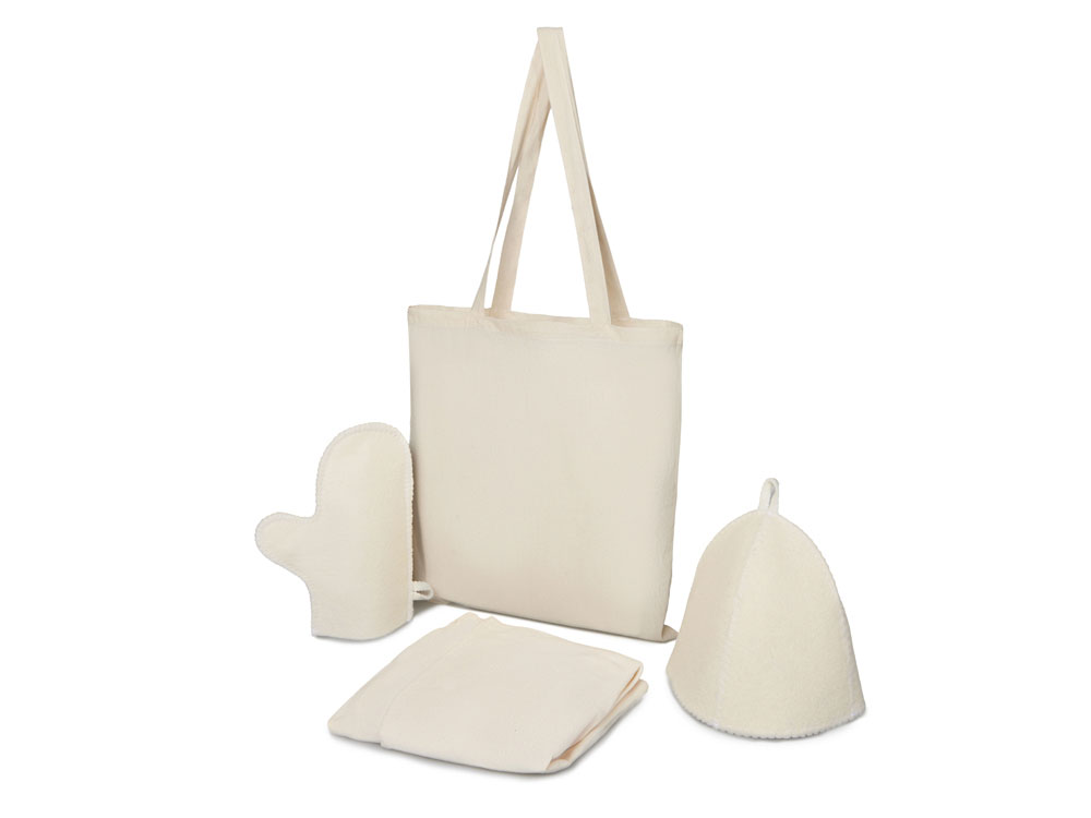 Для настоящего любителя пара — холщовый килт, рукавица и шапка, упакованные в хлопковый шоппер, создадут настроение и уют в каждой бане.