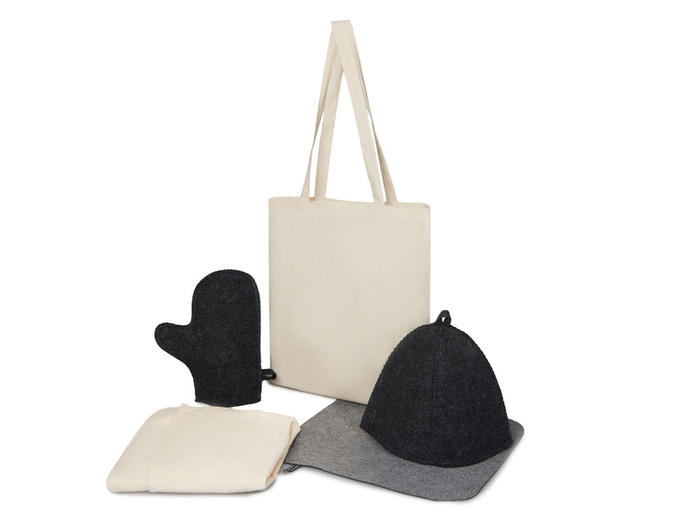 Для настоящего любителя пара — холщовый килт, рукавица, шапка и коврик, упакованные в хлопковый шоппер, создадут настроение и уют в каждой бане.