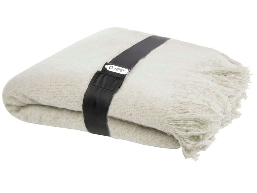 Ультрамягкий мохеровый плед из вторичного ПЭТ, обернутый лентой из вторичного ПЭТ 190T. Упаковано в полиэтиленовый пакет из переработанного материала. Длина бахромы: 10 см с каждой стороны. Размер ленты: 72 см x 4 см. 100% переработанный полиэстер, 215 g/m2.