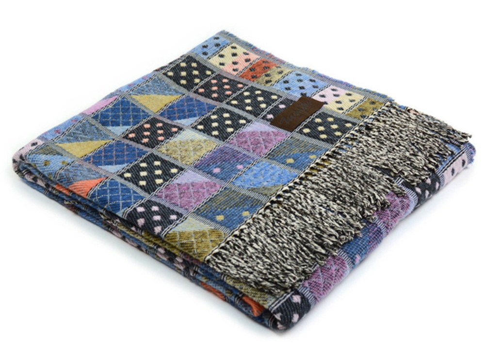 • Плед в стиле пэчворк украшен бахромой, оригинальный дизайн органично впишется в интерьер и станет стильным украшением вашего дома. Постелите плед на диван или на кровать, возьмите с собой на дачу или используйте плед-покрывало в кресле-качалке.