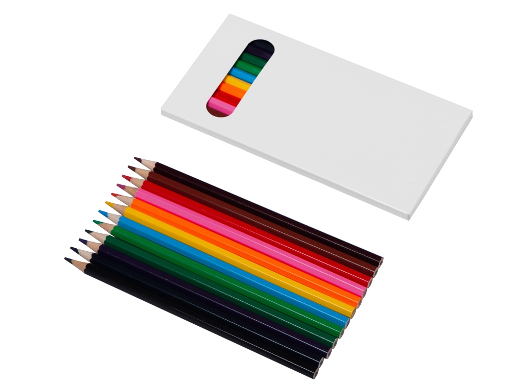 Набор из 12 шестигранных цветных карандашей твердостью ТМ. Нанесение можно сделать на всей поверхности упаковки Тампопечать (1 цвет (цветные изделия)) на данный товар осуществляется бесплатно. Оплачивается только настройка оборудования в размере 4500 рублей на весь тираж.