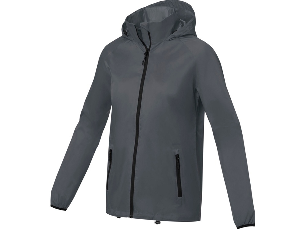 Dinlas Женская легкая куртка. Возможность нанесения на внутреннюю часть фирменной символики. Для большего комфорта основной ярлык можно оторвать или отрезать. Водонепроницаемость 500 мм. Рукав реглан. Капюшон, который можно свернуть. Обратная застежка-молния по центру. Передние карманы с застежкой-молнией. Внутренний карман. Регулируемый шнурок внизу подола и капюшоне.