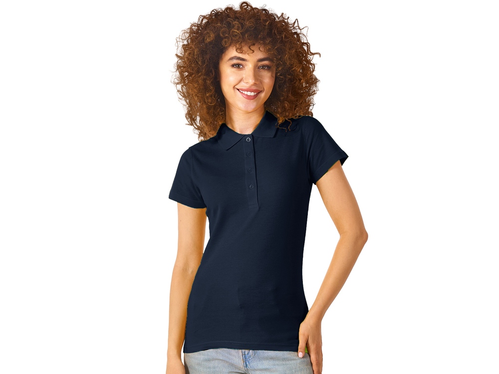 Женская рубашка-поло First. Воротник 1х1. Обшивка внутри воротника. Мужская и детская модели с 2 пуговицами, женская - с 4 пуговицами. Пуговицы с гравировкой в тон. Пике, 100% хлопок. 160 г/м2.