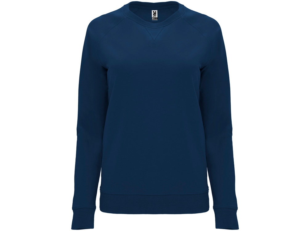 Свитшот с рукавом реглан из хлопкового футера без начеса. Манжеты по рукавами низу изделия из риба 2х1. Впереди треугольная деталь с декоративной отстрочкой .Круглый вырез горловины дополнительно усилен тесьмой.
