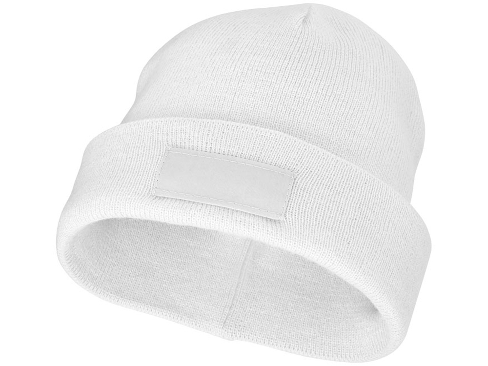 Шапка Boreas с нашивками. Однослойная лыжная шапочка с двойными подвернутыми краями. Вязка в рубчик 1x1 из 100 % акрила. Нашивка из 100 % полиэстера. Термотрансфер (1 цвет (белые изделия)) на данный товар осуществляется бесплатно. Оплачивается только настройка оборудования в размере 8200 рублей на весь тираж.