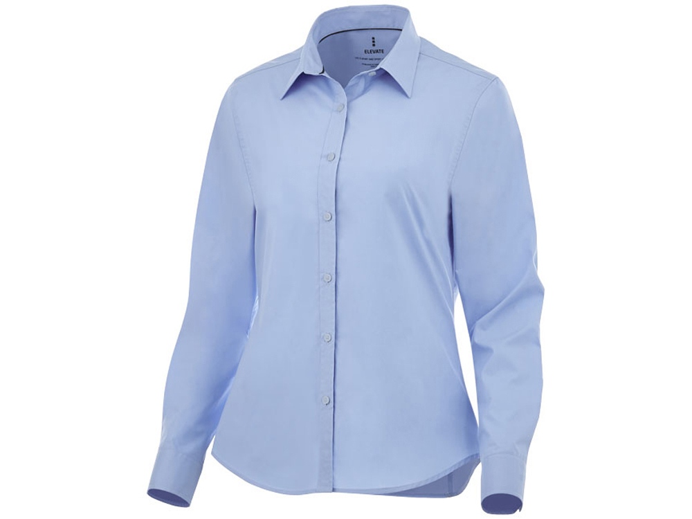 Женская рубашка с длинными рукавами Hamell. манжет на одной пуговице. Атласная окантовка внутренней части горловины. Швы моделирующие фигуру и приталенный крой. Гравированные пуговицы в цвет изделия. Комфортный ярлык-трансфер на изделии. Поплин из 96% хлопка и 4% эластана. 118 г/м². Трафаретная печать (1 цвет (цветные изделия)) на данный товар осуществляется бесплатно. Оплачивается только настройка оборудования в размере 9100 рублей на весь тираж.