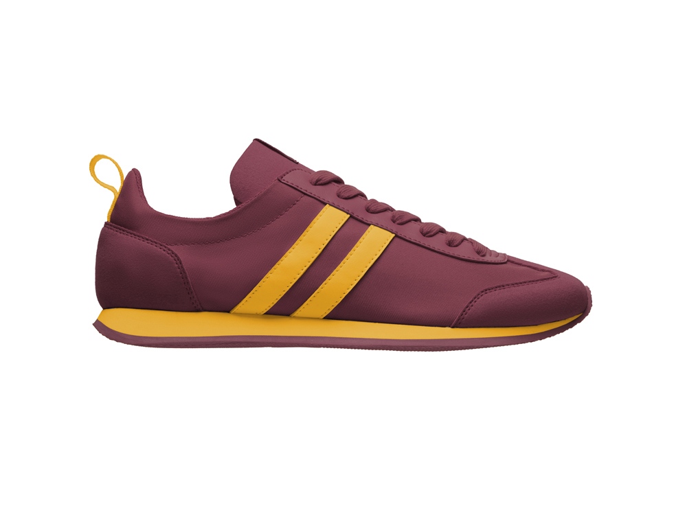 Повседневные кроссовки в стиле ретро с узким носком и резиновой подошвой. Фиксация на ноге с помощью шнурков, декоративные боковые полоски.