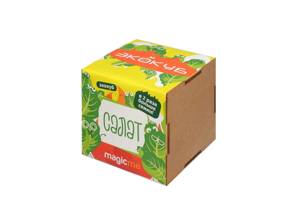 Экокуб Magicme в его минималистичном дизайне впишется в интерьер офиса или дома. Деревянный куб отличается экологическим составом благодаря использованию берёзовой древесины и универсальной краске на водной основе, что позволяет выращивать растение не только взрослым, но и детям.