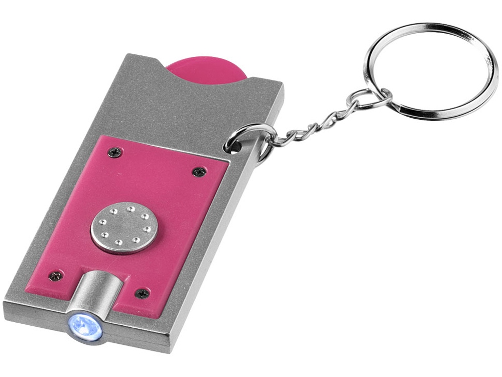 Брелок-держатель для монет Allegro с фонариком для ключей. Пластиковый держатель для монет достоинством 1 евро размером Ø 6 мм с одним белым светодиодом для ключей. Металлическое кольцо для ключей Ø 25 мм. Батарейки включены в комплект и вставлены. АБС-пластик. Тампопечать (1 цвет (цветные изделия)) на данный товар осуществляется бесплатно. Оплачивается только настройка оборудования в размере 4500 рублей на весь тираж.