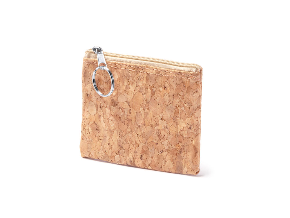 Кошелек из натуральной пробки с серебристым кольцом на застежке-молнии.